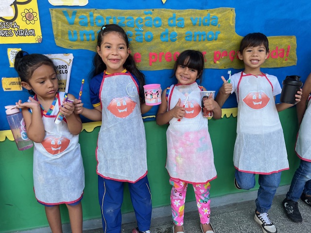 A ação é desenvolvida anualmente em parceria com a unidade básica de saúde (UBS) 16 e faz parte do projeto “saúde na escola”, que há mais de 20 anos promove atividades de prevenção, escovação supervisionada e distribuição de kits de higiene bucal com escovas, cremes dentais e flúor para os estudantes.