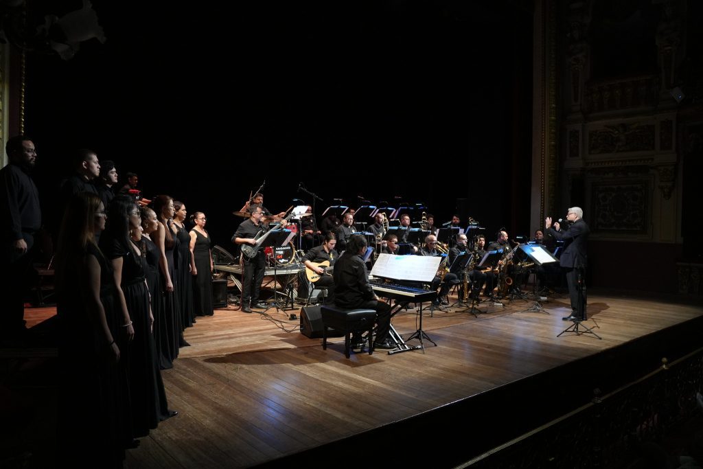 O Teatro Amazonas recebeu, na terça-feira (14/10), o concerto “Lux Aeterna – À memória de Maestro Branco e Hermeto Pascoal”, apresentado pela Amazonas Band sob regência do maestro Rui Carvalho. O espetáculo, promovido pelo Governo do Amazonas, por meio da Secretaria de Estado de Cultura e economia criativa, reuniu o público em uma noite de emoção, virtuosismo e celebração do legado de dois ícones da música brasileira.